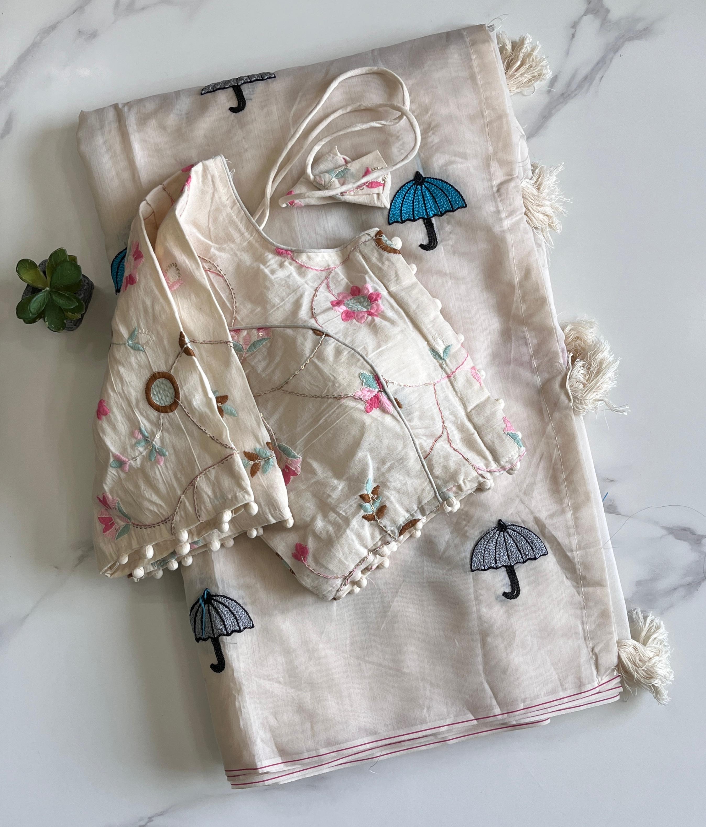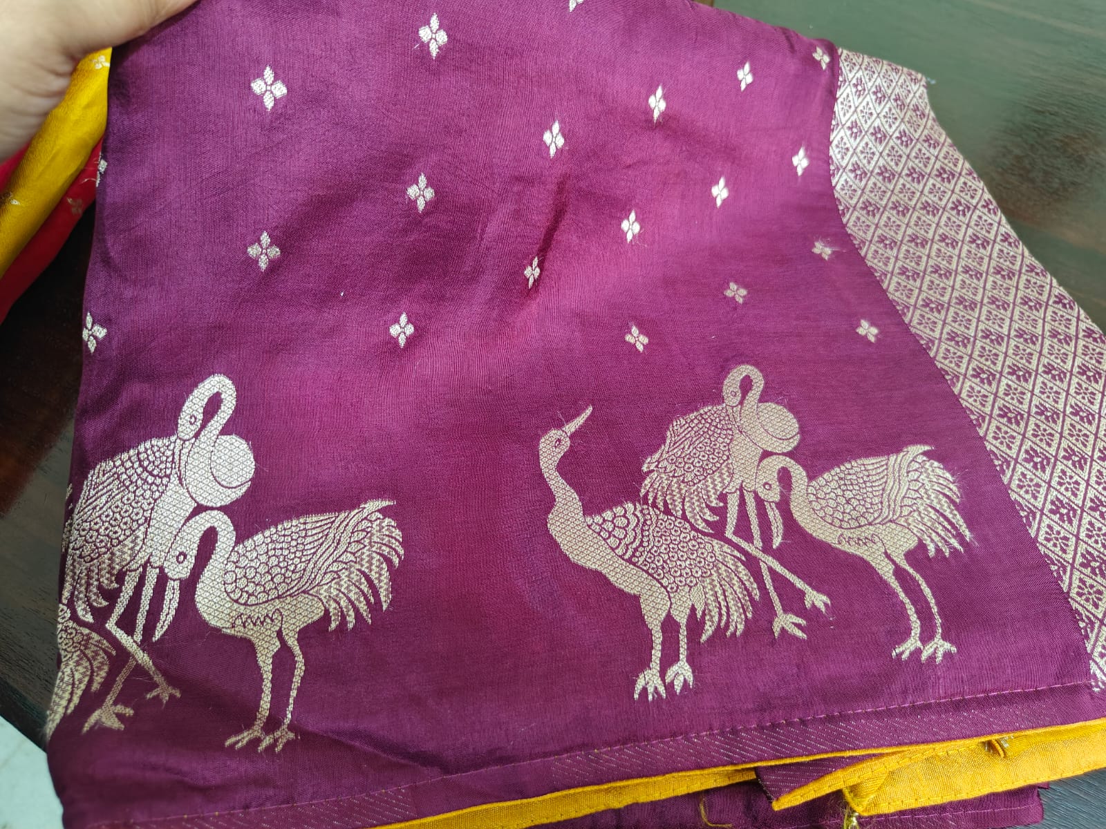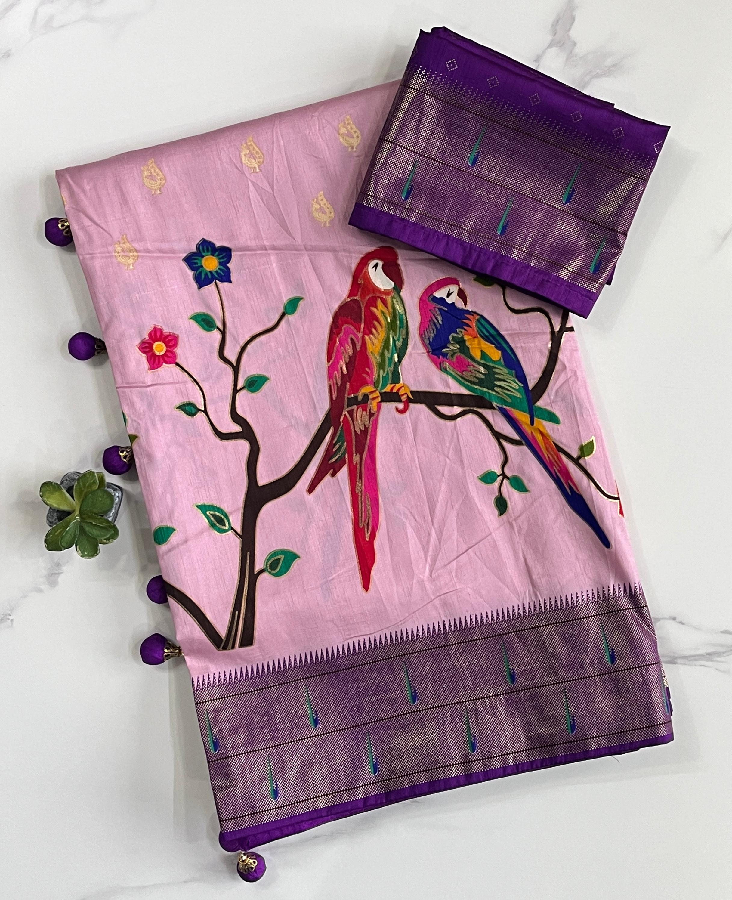 Experience elegance with this premium Chanderi saree featuring exquisite parrot embroidery...