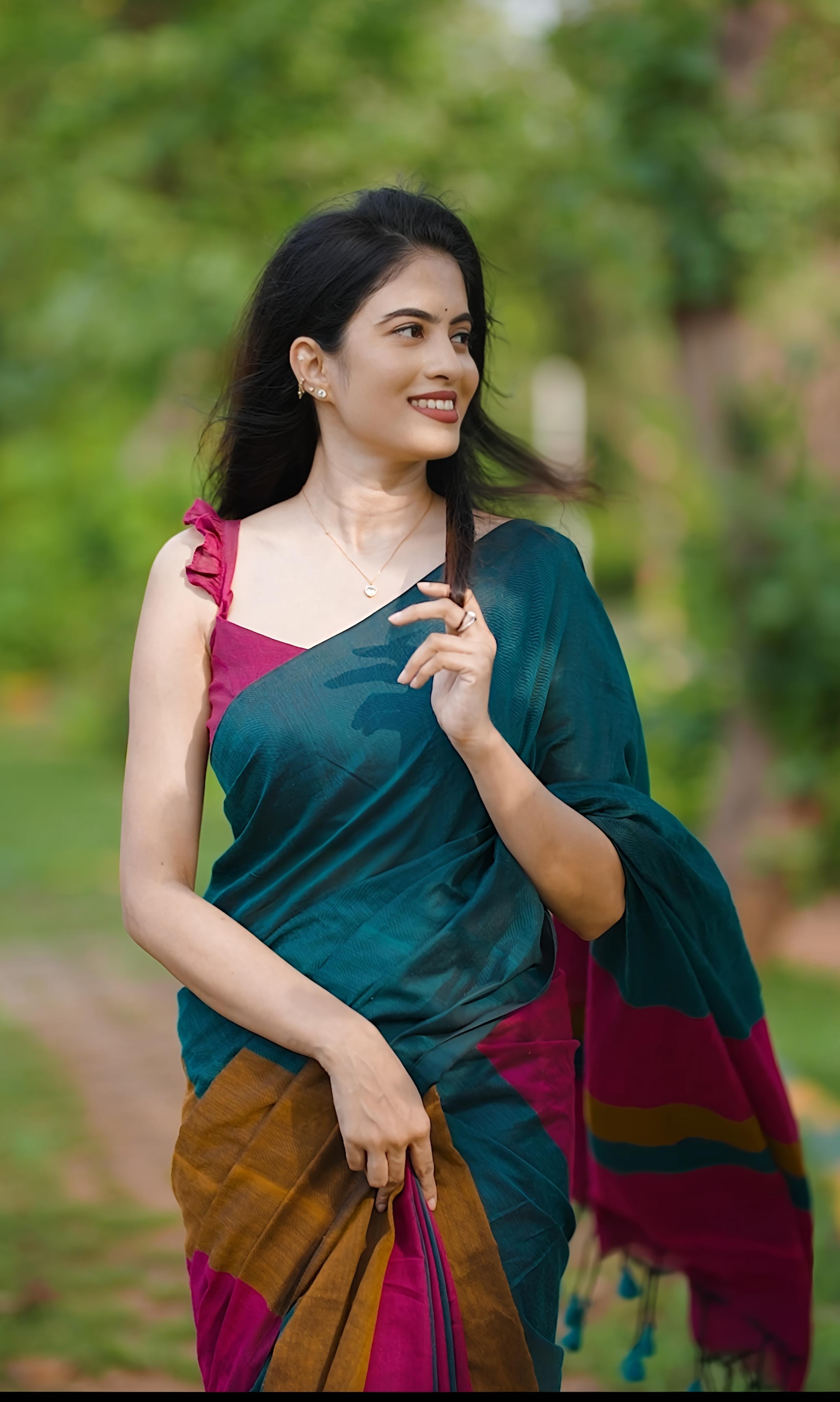 Expertly crafted with high quality linen fabric, these beautiful sarees are...