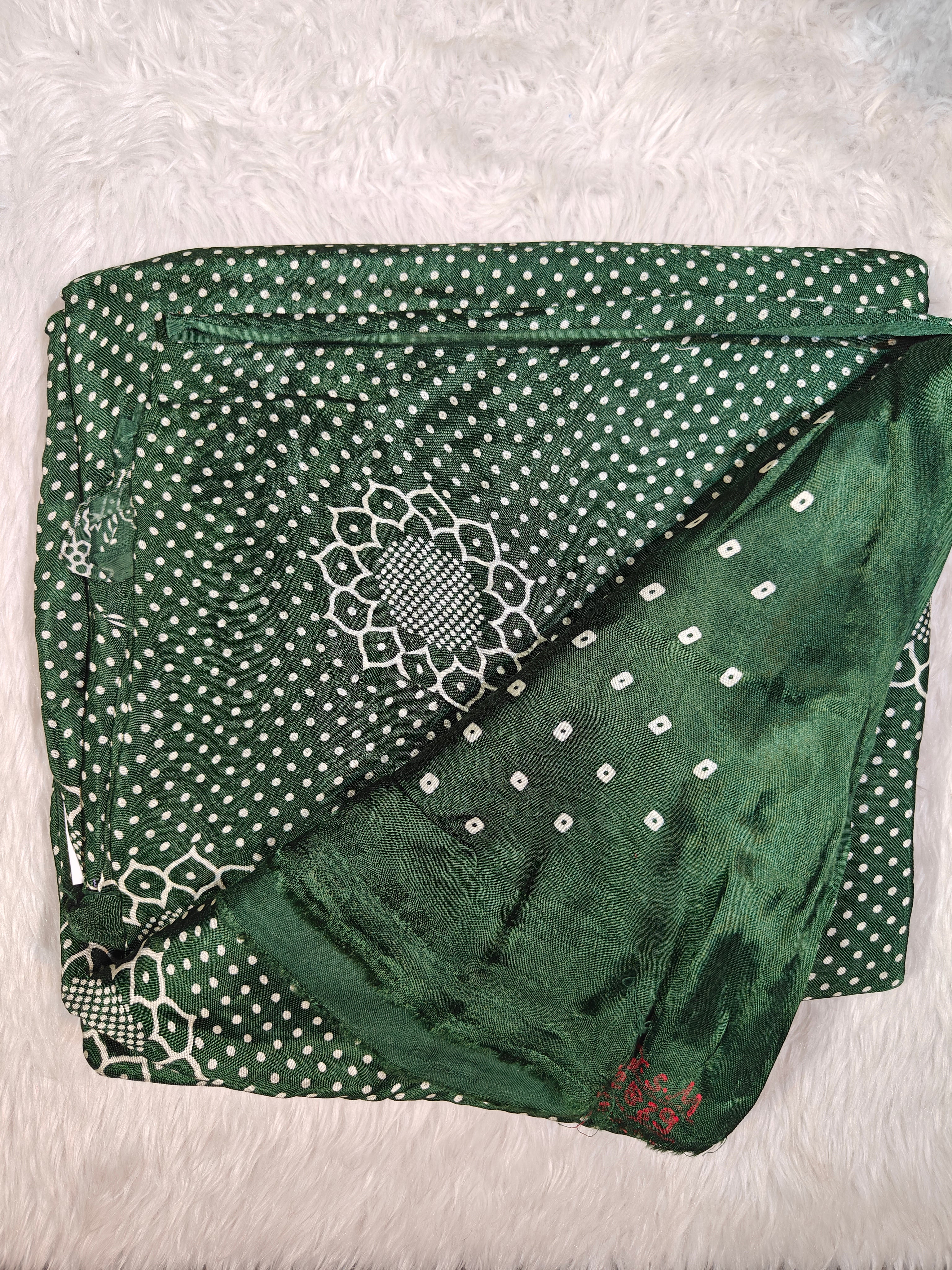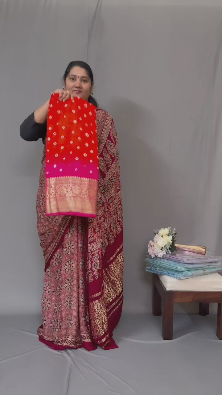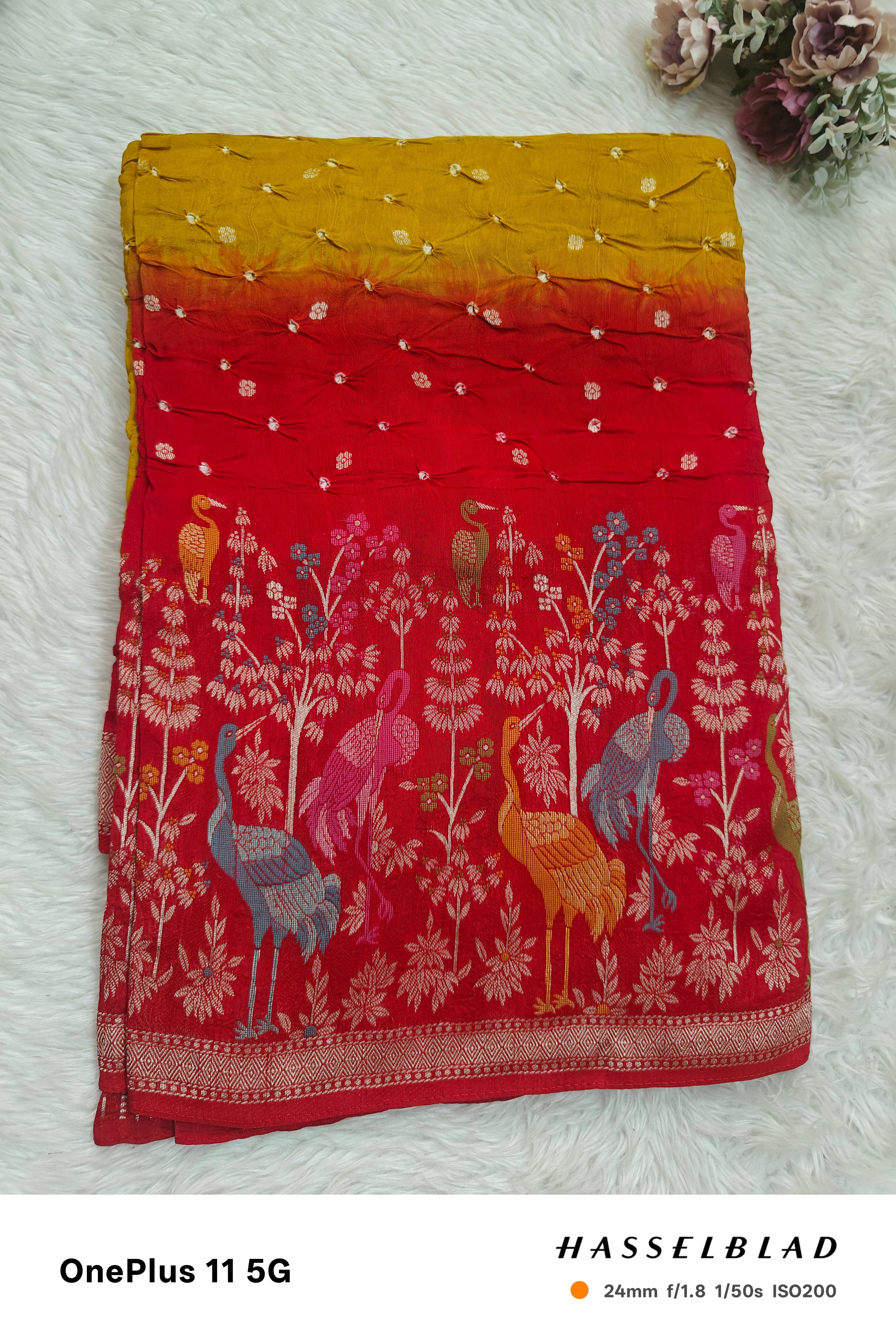 Experience the elegance of this pure Bandhini silk saree, featuring intricate...