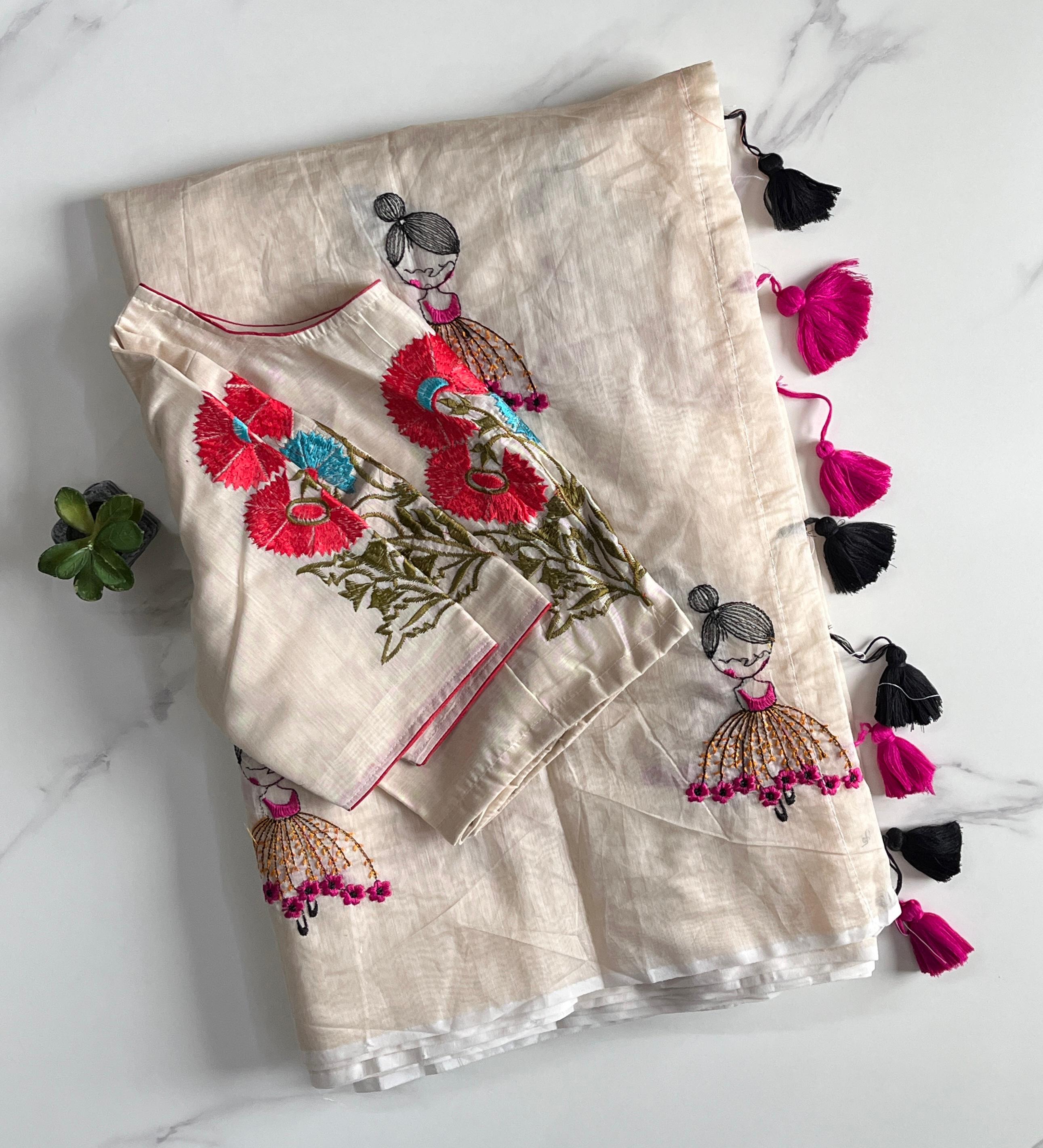 These Beautiful Katha Work Sarees are crafted from high-quality Semi Tussar...