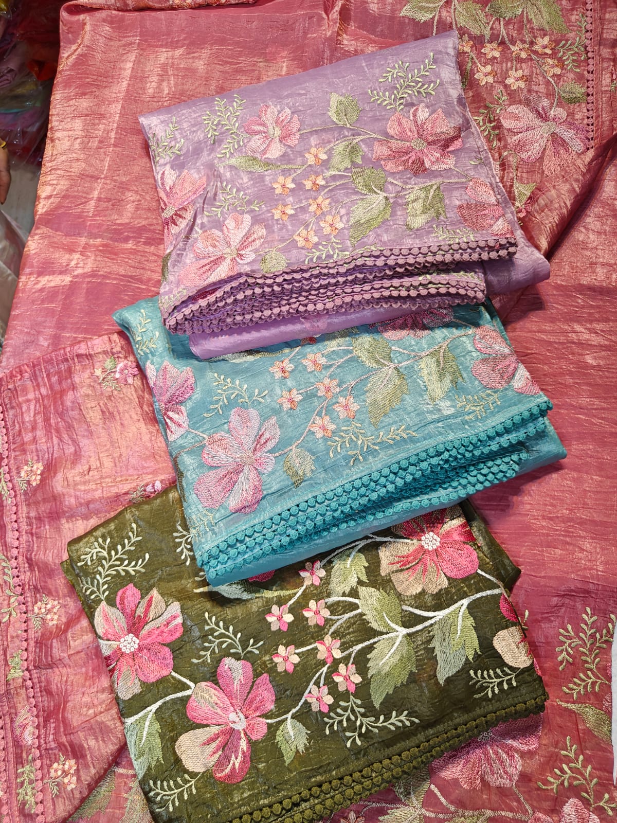 Step into elegance with our exclusive Pure Tissue saree, featuring delicate...