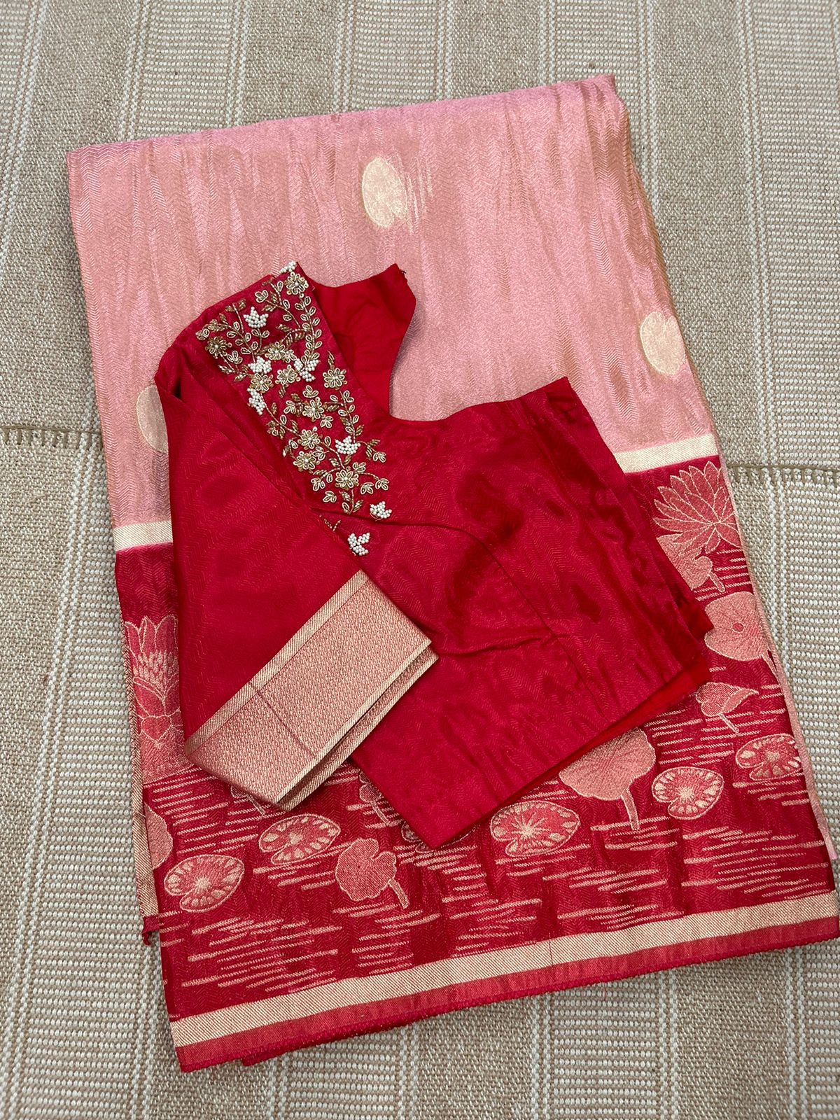 Elevate your ethnic wardrobe with this exquisite tomato pink doriya chiniya...