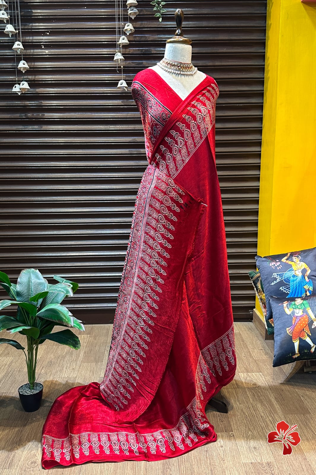 Discover the timeless elegance of our Ajrakh hand block printed viscose...