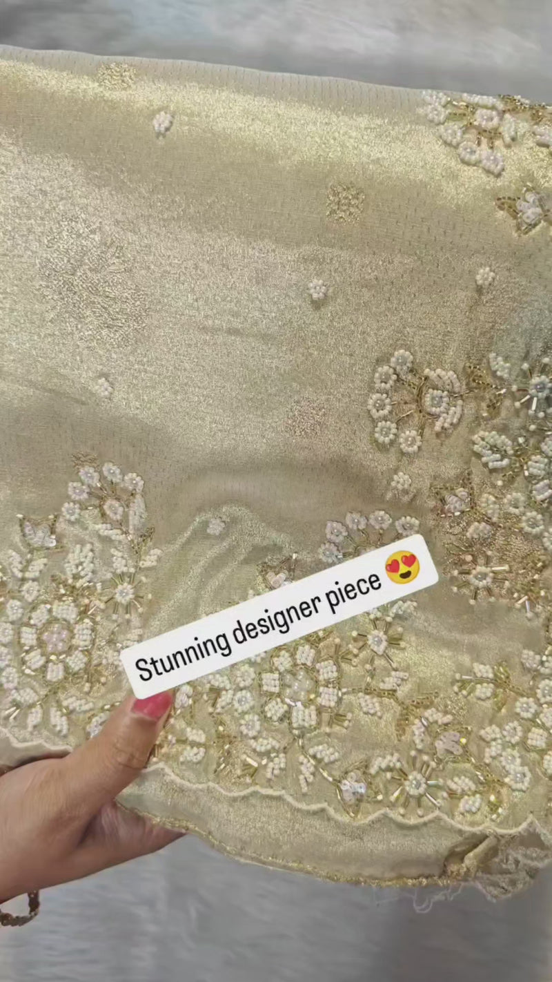 Kanchi tissue saree featuring exquisite hand-embroidered cutdana and beads work. This...