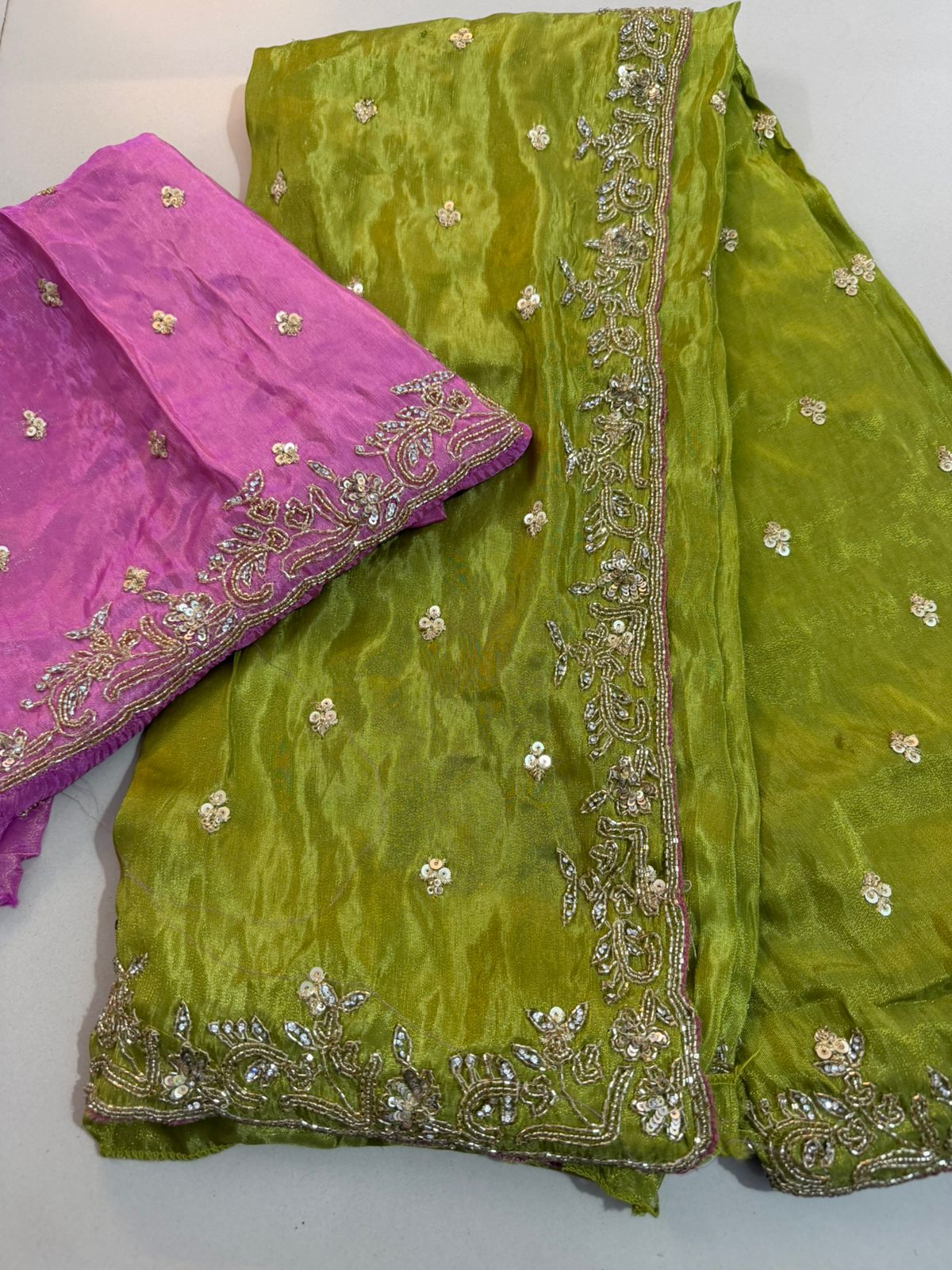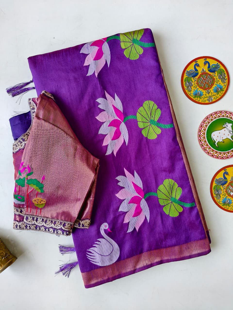 Discover the timeless elegance of this Banarsi semi-Katan silk saree, meticulously handwoven to perfection. Crafted from luxuriously soft fabric, it features intricate silver zari work with traditional woven designs that showcase authentic craftsmanship. The saree comes paired with a coordinating contrast blouse adorned with a decorative border, completing your ensemble effortlessly. Ideal for festive occasions and celebrations, this piece combines heritage artistry with contemporary comfort. Enjoy free shipping on this exquisite addition to your wardrobe.